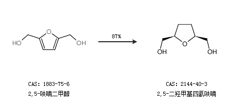 2.通过2,5-呋喃二甲醇合成2,5-二羟甲基四氢呋喃,收率约87%;