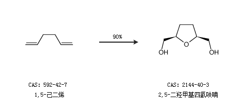 1.通过1,5-己二烯合成2,5-二羟甲基四氢呋喃,收率约90%;