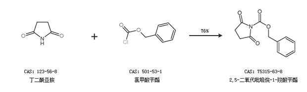 2.通过丁二酰亚胺和氯甲酸苄酯合成2,5-二氧代吡咯烷-1-羧酸苄酯,收率约76%;