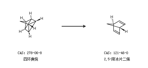 1.通过四环庚烷合成2,5-降冰片二烯,收率约99%;