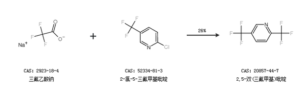 2.通过三氟乙酸钠和2-氯-5-三氟甲基吡啶合成2,5-双(三氟甲基)吡啶,收率约26%;