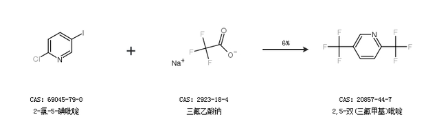1.通过2-氯-5-碘吡啶和三氟乙酸钠合成2,5-双(三氟甲基)吡啶,收率约6%;