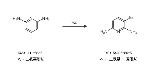 1.通过2,6-二氨基吡啶合成2,6-二氨基-3-溴吡啶,收率约75%;