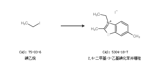 1.通过碘乙烷合成2,6-二甲基-3-乙基碘化苯并噻唑