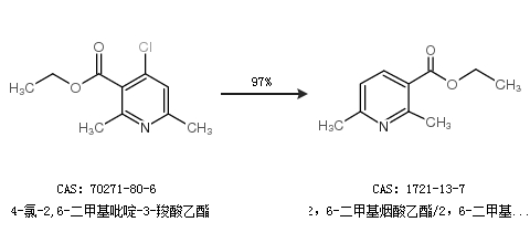 2.通过4-氯-2,6-二甲基吡啶-3-羧酸乙酯合成2,6-二甲基烟酸乙酯/2,6-二甲基-3-羧酸甲酯,收率约97%;