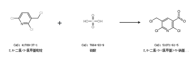 1.通过2,6-二氯-3-氯甲基吡啶和硫酸合成2,6-二氯-3-(氯甲基)-5-硝基吡啶