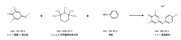 1.通过2,6-二氯醌-4-氯亚胺、2,2,6,6-四甲基哌啶氧化物和苯酚合成2,6-二氯靛酚钠