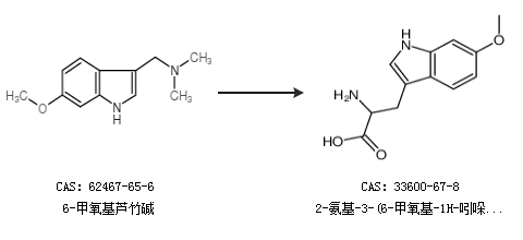 1.通过6-甲氧基芦竹碱合成2-氨基-3-(6-甲氧基-1H-吲哚-3-基)丙酸