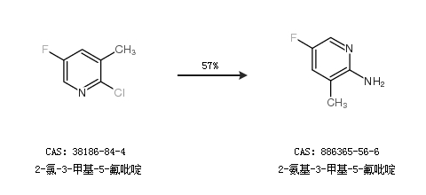 1.通过2-氯-3-甲基-5-氟吡啶合成2-氨基-3-甲基-5-氟吡啶,收率约57%;