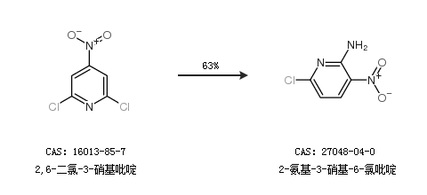 2.通过2,6-二氯-3-硝基吡啶合成2-氨基-3-硝基-6-氯吡啶,收率约63%;