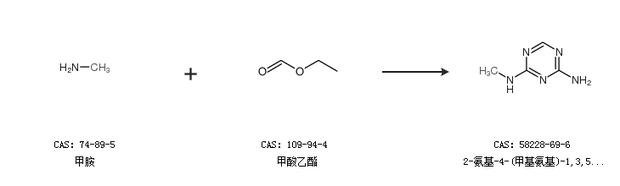2.通过甲胺和甲酸乙酯合成2-氨基-4-(甲基氨基)-1,3,5-三嗪
