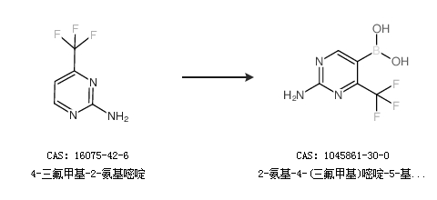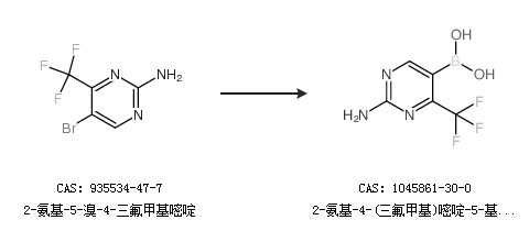 1.通过2-氨基-5-溴-4-三氟甲基嘧啶合成2-氨基-4-(三氟甲基)嘧啶-5-基硼酸