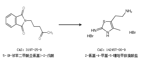 2.通过5-(N-邻苯二甲酰亚氨基)-2-戊酮合成2-氨基-4-甲基-5-噻唑甲胺溴酸盐