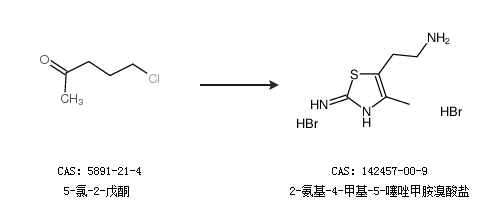 1.通过5-氯-2-戊酮合成2-氨基-4-甲基-5-噻唑甲胺溴酸盐
