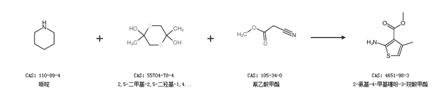 1.通过哌啶、2,5-二甲基-2,5-二羟基-1,4-二噻烷和氰乙酸甲酯合成2-氨基-4-甲基噻吩-3-羧酸甲酯