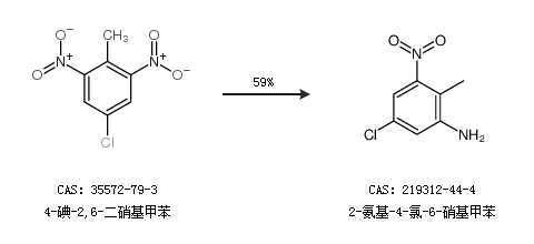 1.通过4-碘-2,6-二硝基甲苯合成2-氨基-4-氯-6-硝基甲苯,收率约59%;