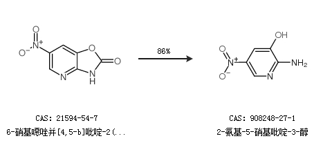 1.通过6-硝基噁唑并[4,5-b]吡啶-2(3h)-酮合成2-氨基-5-硝基吡啶-3-醇,收率约86%;