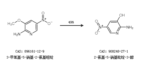 2.通过3-甲氧基-5-硝基-2-氨基嘧啶合成2-氨基-5-硝基吡啶-3-醇,收率约49%;