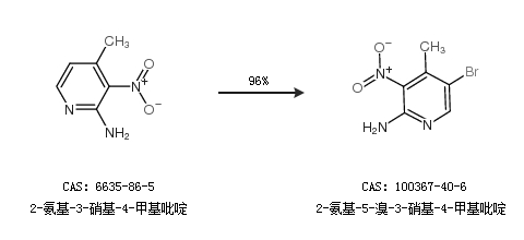 1.通过2-氨基-3-硝基-4-甲基吡啶合成2-氨基-5-溴-3-硝基-4-甲基吡啶,收率约96%;