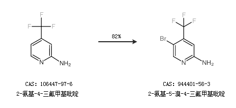 1.通过2-氨基-4-三氟甲基吡啶合成2-氨基-5-溴-4-三氟甲基吡啶,收率约82%;