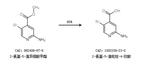 2.通过2-氨基-5-溴异烟酸甲酯合成2-氨基-5-溴吡啶-4-羧酸,收率约80%;