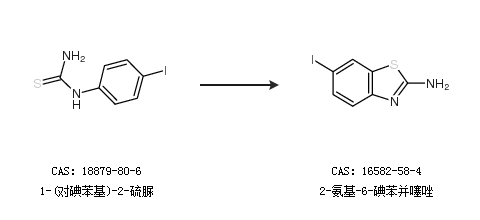 2.通过1-(对碘苯基)-2-硫脲合成2-氨基-6-碘苯并噻唑