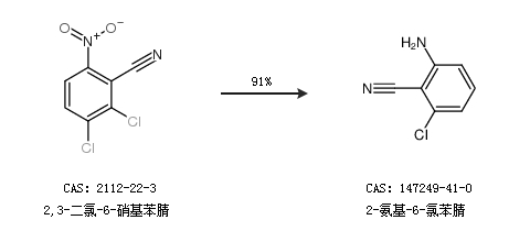 1.通过2,3-二氯-6-硝基苯腈合成2-氨基-6-氯苯腈,收率约91%;