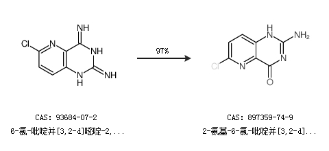 2.通过6-氯-吡啶并[3,2-d]嘧啶-2,4-二胺合成2-氨基-6-氯-吡啶并[3,2-d]嘧啶-4(1h)-酮,收率约97%;