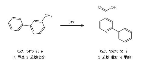 2.通过4-甲基-2-苯基吡啶合成2-苯基-吡啶-4-甲酸,收率约84%;