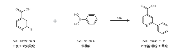 1.通过2-溴-4-吡啶羧酸和苯硼酸合成2-苯基-吡啶-4-甲酸,收率约47%;