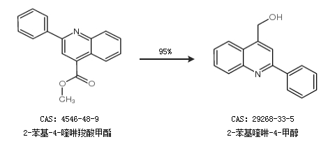 1.通过2-苯基-4-喹啉羧酸甲酯合成2-苯基喹啉-4-甲醇,收率约95%;