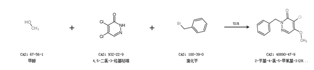 2.通过甲醇、4,5-二氯-3-羟基哒嗪和溴化苄合成2-苄基-4-氯-5-甲氧基-3(2H-)-吡嗪酮,收率约51%;
