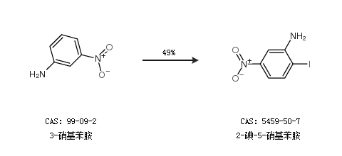2.通过3-硝基苯胺合成2-碘-5-硝基苯胺,收率约49%;