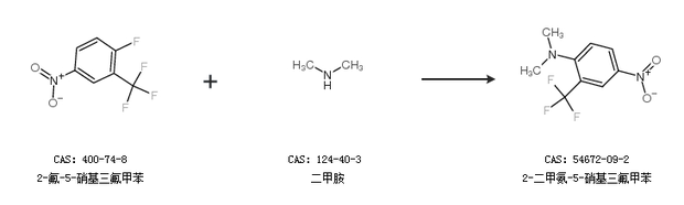 1.通过2-氟-5-硝基三氟甲苯和二甲胺合成2-二甲氨-5-硝基三氟甲苯