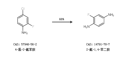 2.通过4-氯-2-氟苯胺合成2-氟-1,4-苯二胺,收率约68%;