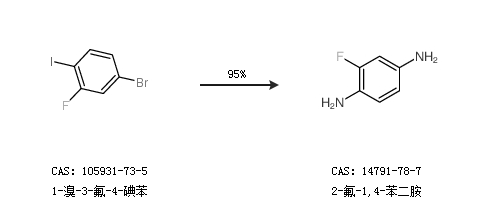 1.通过1-溴-3-氟-4-碘苯合成2-氟-1,4-苯二胺,收率约95%;