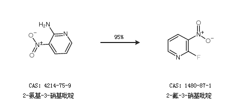 2.通过2-氨基-3-硝基吡啶合成2-氟-3-硝基吡啶,收率约95%;