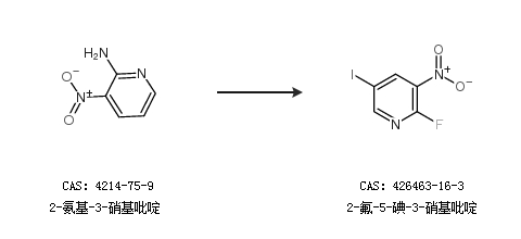 2.通过2-氨基-3-硝基吡啶合成2-氟-5-碘-3-硝基吡啶