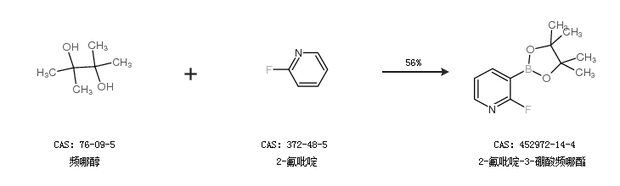 2.通过频哪醇和2-氟吡啶合成2-氟吡啶-3-硼酸频哪酯,收率约56%;