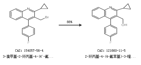 1.通过3-溴甲基-2-环丙基-4-(4''-氟苯基)喹啉合成2-环丙基-4-(4-氟苯基)-3-喹啉甲醇,收率约88%;
