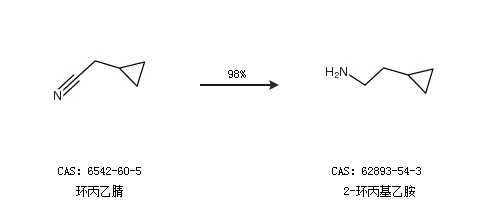 1.通过环丙乙腈合成2-环丙基乙胺,收率约98%;