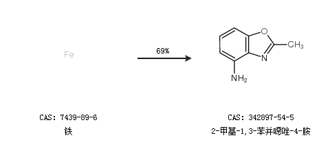 1.通过铁合成2-甲基-1,3-苯并噁唑-4-胺,收率约69%;