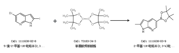 1.通过5-溴-2-甲基-1H-吡咯并[2,3-b]吡啶和联硼酸频那醇酯合成2-甲基-1H-吡咯并[2,3-b]吡啶-5-硼酸频那醇酯