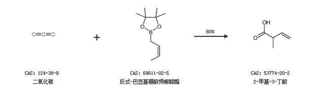 2.通过二氧化碳和反式-巴豆基硼酸频哪醇酯合成2-甲基-3-丁酸,收率约80%;