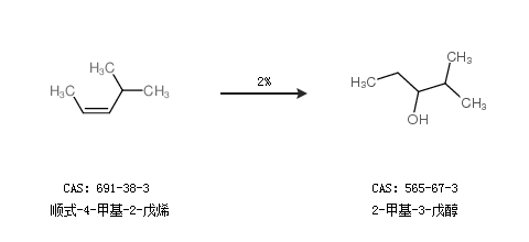 2.通过顺式-4-甲基-2-戊烯合成2-甲基-3-戊醇,收率约2%;