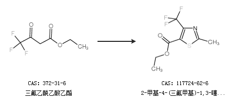1.通过三氟乙酰乙酸乙酯合成2-甲基-4-(三氟甲基)-1,3-噻唑-5-羧酸乙酯