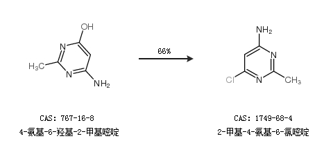 2.通过4-氨基-6-羟基-2-甲基嘧啶合成2-甲基-4-氨基-6-氯嘧啶,收率约66%;