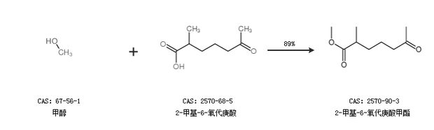 1.通过甲醇和2-甲基-6-氧代庚酸合成2-甲基-6-氧代庚酸甲酯,收率约89%;