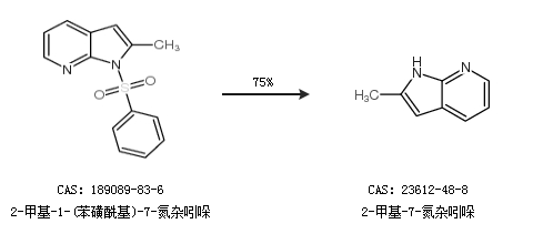 1.通过2-甲基-1-(苯磺酰基)-7-氮杂吲哚合成2-甲基-7-氮杂吲哚,收率约75%;