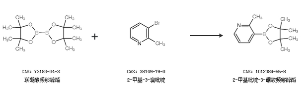 1.通过联硼酸频那醇酯和2-甲基-3-溴吡啶合成2-甲基吡啶-3-硼酸频哪醇酯